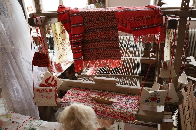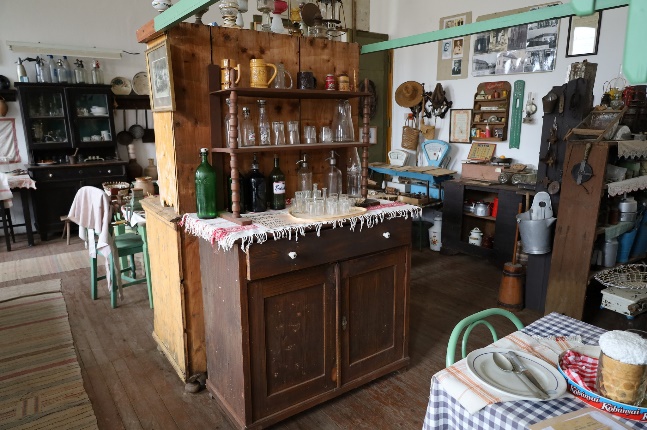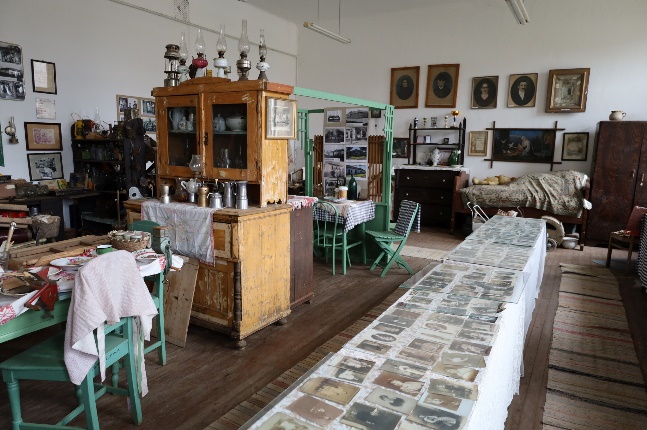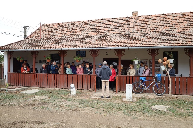 Élményekkel telve mentünk át a Szlovák Emlékházba, ahol ismét Dohányos András tartott számunkra bemutatót. 2019-ben került átadásra a háromgenerációs ház, ahol az egyik szobában egy özvegyasszony „lakik”, középen a konyha a kemencével, a vajkészítés eszközeivel, vasalóval, az első szobában pedig a Cselovszki család hagyatéka található, a polcokon a fotóikkal.