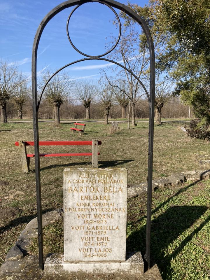 Még két témáról érdemes röviden szót ejteni. A látogatásról készült fényképek felkerültek a Családkutatók Klubja Szolnokon Fb csoportba. Egyik kedves társunk azonnal küldött néhány képet a Bartók család csorvási kötődéséhez kapcsolódva. Röviden mi is ez a kötődés? Bartók Béla szülei Csorváson kötöttek házasságot, és Bartók Béla anyai nagyanyja a csorvási katolikus ótemetőben lett eltemetve. A házasságra 1880. április 5-én került sor, Bartók Béla, nagyszentmiklósi földmíves oskolai igazgató, és a pozsonyi születésű Voit Paula Csorvás majori lakos, nagyszentmiklósi tanítónő között, Grócz Béla lelkész előtt köttetett.