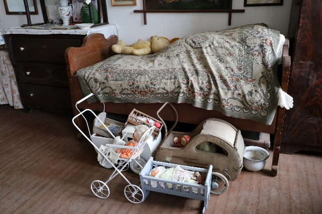 A felújított tornác remek helyet adott az ismertetésre. Megtudhattuk, hogy a ház tulajdonosai eredetileg is szlovákok voltak, a berendezést pedig adományokból állt össze. Az utcától legtávolabb a legvédettebb helyen egy első világháborúban elhunyt katona özvegyének lakhelyét láthattuk, aki nem ment újra férjhez. Minden erejét az árvák felnevelésére fordította.