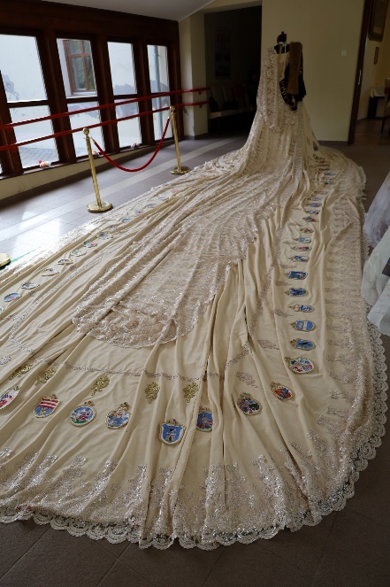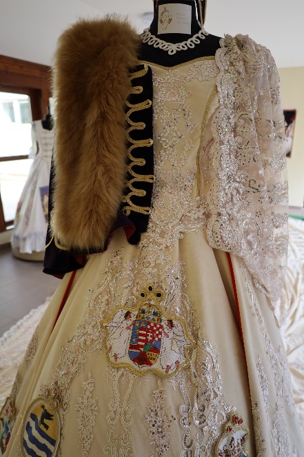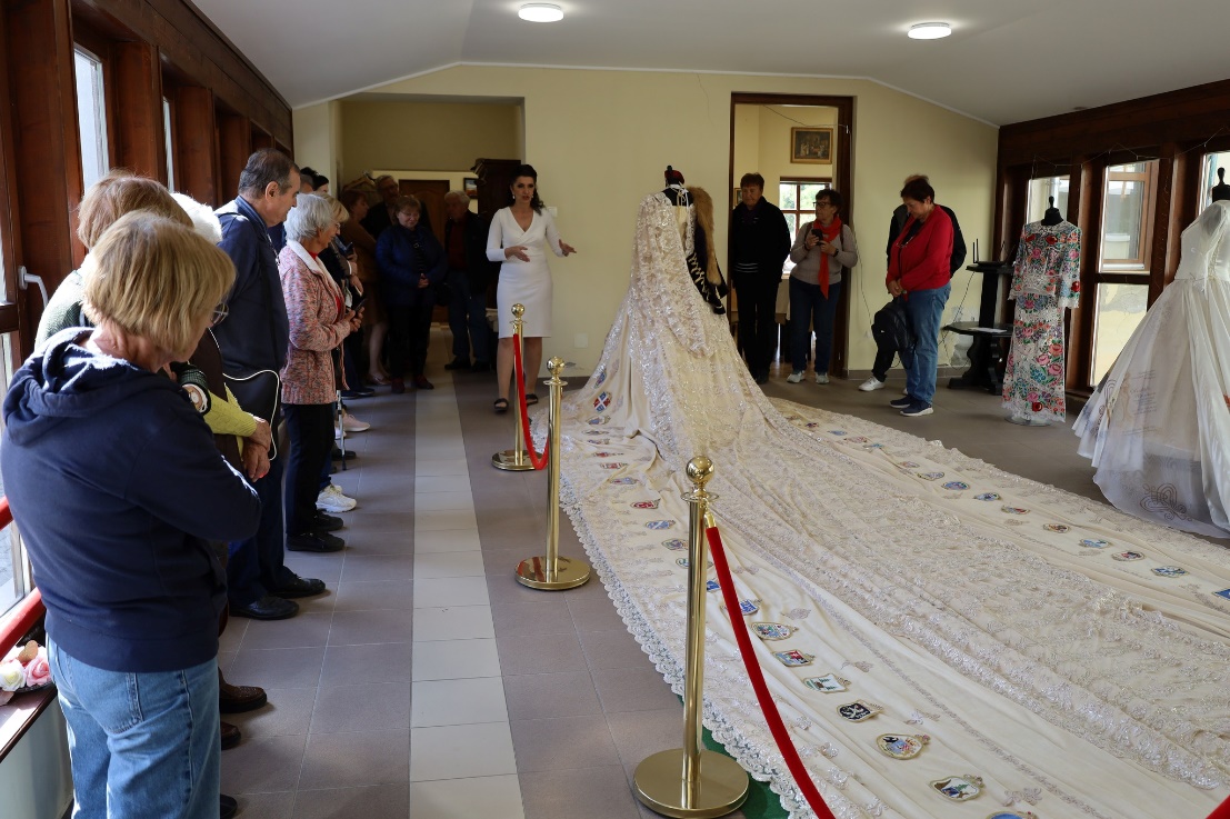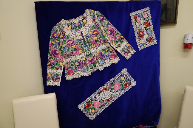Majd következett a kiállítás megtekintése. Elsőként az Ország Ruháját láthattuk. A mester- remek folyamatosan készül, szépül. A legapróbb részlete is dicséri a készítőik keze munkáját.